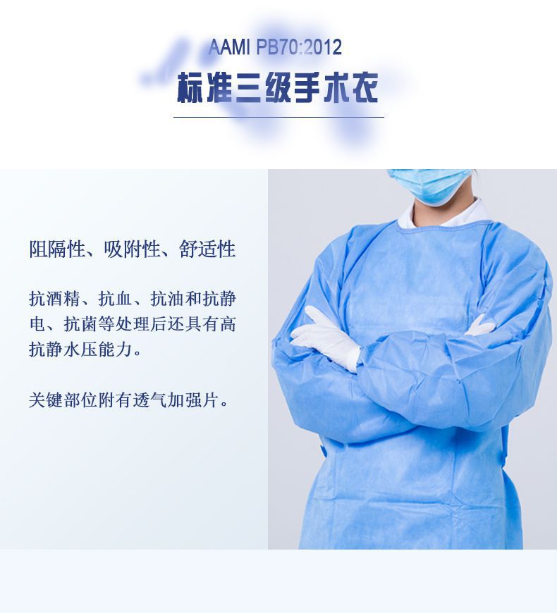 產(chǎn)品性能:抗酒精、抗血液、抗病毒等特點,降低醫(yī)務(wù)人員接觸病原微生物的風(fēng)險;